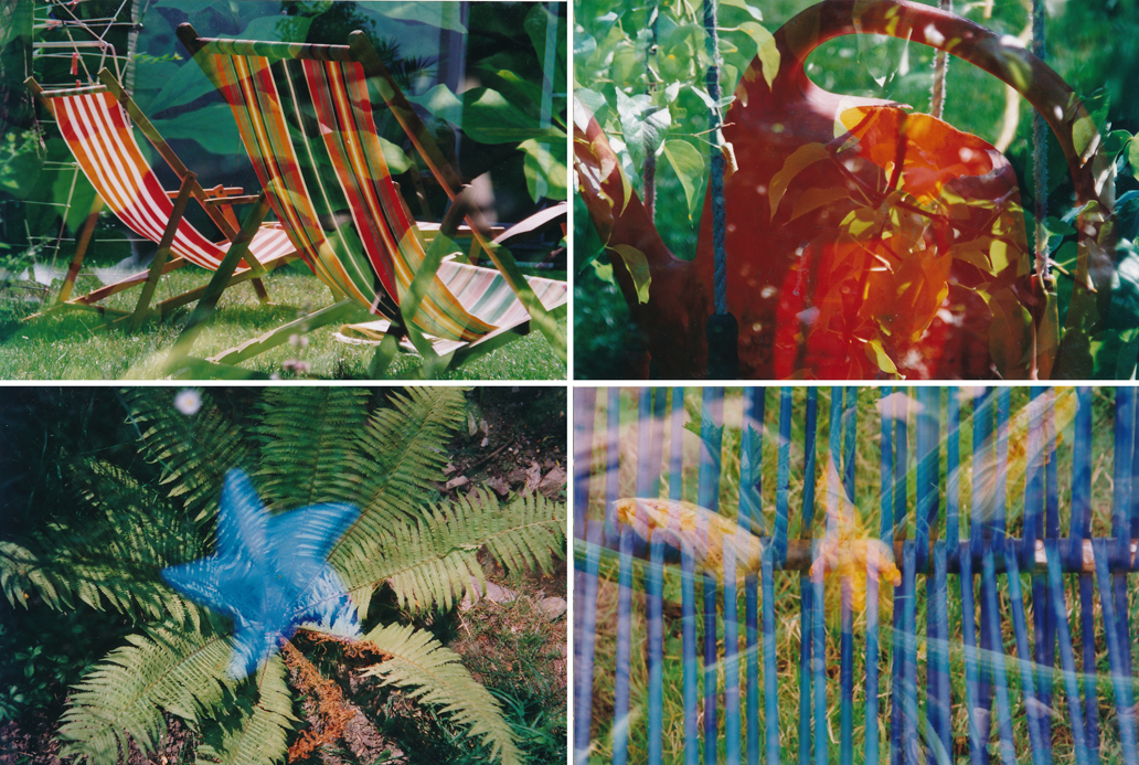 In unseren fotografischen Arbeiten beschäftigten wir uns immer wieder mit mit Doppel- und Mehrfachbelichtungen. Mit dieser Technik erweiterten wir unseren Montagegedanken ins Innere der Bilder. Die langjährige Beschäftigung mit elektronischen Medien bildete die assoziative Folie für den geschichteten Bildaufbau. Wipes, keys, superimpose waren die Grundgrößen des Videomischers, Untertitel, Blenden, Stanzen nahmen den Film auch noch mit. Wir verwendeten dafür aber nicht die diesem Vokabular nachempfundenen Features diverser digitaler Fotobearbeitungsprogramme, unsere spezielle Ästhetik ergab sich daraus, dass die Belichtungseffekte in der Kamera erzielt wurden. Dadurch entstand eine mittlerweile ungewohnte Weichheit, ein Rest von dreidimensionaler Illusion, Fotografien, die digital sein könnten, es aber nicht waren. Die Serien wurden in verschiedenen Formaten, in Einzelbildern, Dreierserien, Viererserien, hinter Plexiglas, zwischen Glas, auf Aluminium und in Leuchtkästen präsentiert. Wir verstanden diese Werkgruppe auch als Station einer Medienarbeit, in der Grundfragen zum elektronischen Bild, zum chemischen Bild, zum Schnitt, zur Blende diskutiert wurden. Vor allem malerische und/oder grafische Elemente bestimmten die Zusammenstellungen der Serien. Trotz aller Erfahrung, nein wegen aller Erfahrung wurde dem Zufall Raum gegeben. Die Ungenauigkeiten die er schafft, sind präzise. Die wichtigsten Methoden, die Doppelbelichtungen herzustellen, waren: